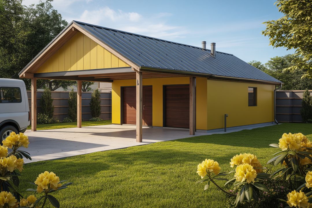 Budynek wykonany w technologii tradycyjnej. Ściany murowane z bloczków z betonu komórkowego grubości 24cm. Bramy o wymiarach 2,40×2,20m. Słupy z cegły ceramicznej pełnej. Podciągi żelbetowe. Więźba dachowa dwuspadowa, drewniana, pokryta blachodachówką.