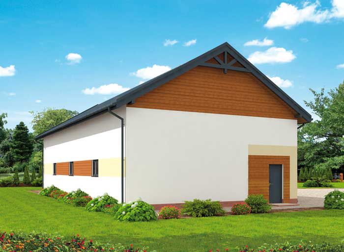 Graficzne opracowanie rzutów poglądowych widocznych na karcie projektu zostało wykonane przez Extradom.pl. Prezentowane przez Extradom.pl wizualizacje wykonane zostały przez autora projektu i należy poczytywać je jedynie za przykład i propozycję wykończenia, wizję architektoniczną autora projektu. Ostateczne wykończenie budynku może nastąpić na wiele sposobów. Szczegółowe rozwiązania zastosowane w oferowanej dokumentacji - w tym również ilość, lokalizacje i wygląd okien, drzwi, kominów - mogą w niewielkim stopniu różnić się od prezentowanej wizualizacji budynku.