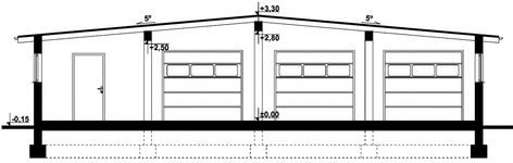 Budynek wykonany w technologii tradycyjnej. Ściany murowane z bloczków z betonu komórkowego grubości 24cm. Bramy o wymiarach 2,50×2,20m. Słupy i podciągi i żelbetowe. Więźba dachowa dwuspadowa, drewniana, pokryta blachą trapezową.