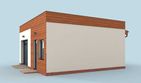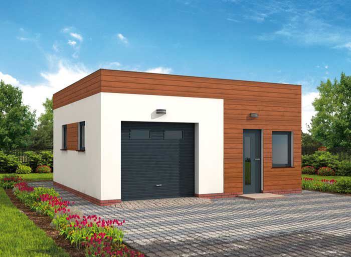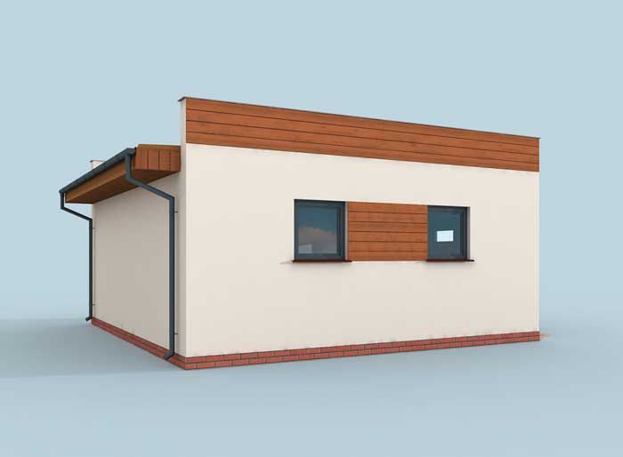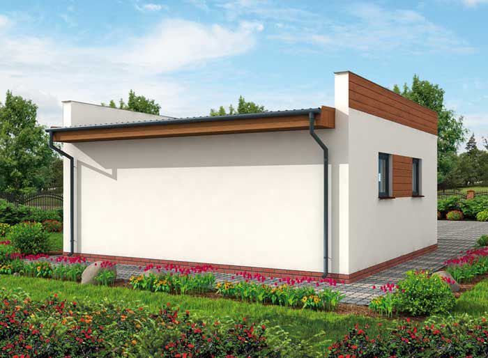 Technologia tradycyjna :- powierzchnia użytkowa -37,55m2 - powierzchnia zabudowy -44,98m2 - powierzchnia całkowita -49,1m2 - kubatura - 149,00m3 - ściany zewnętrzne nośne murowane grubości 25cm - wszystkie ściany wykonane z pustaków ceramicznych "POROTHERM" - wysokość budynku 3,74m - dach jednospadowy 3° - więźba dachowa drewniana - pokrycie dachu papa - wymiar bramy garażowej 2,4x2,2m