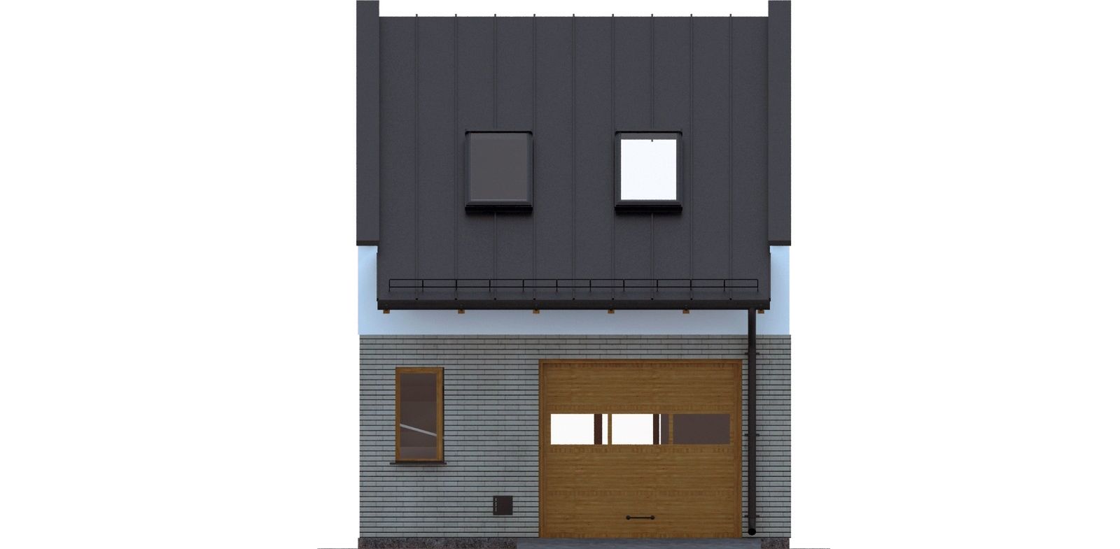 Graficzne opracowanie rzutów poglądowych widocznych na karcie projektu zostało wykonane przez Extradom.pl. Prezentowane przez Extradom.pl wizualizacje wykonane zostały przez autora projektu i należy poczytywać je jedynie za przykład i propozycję wykończenia, wizję architektoniczną autora projektu. Ostateczne wykończenie budynku może nastąpić na wiele sposobów. Szczegółowe rozwiązania zastosowane w oferowanej dokumentacji - w tym również ilość, lokalizacje i wygląd okien, drzwi, kominów - mogą w niewielkim stopniu różnić się od prezentowanej wizualizacji budynku.