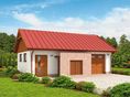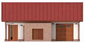 Technologia tradycyjna :- powierzchnia użytkowa -62,52m2 - powierzchnia zabudowy -75,13m2 - powierzchnia całkowita -75,13m2 - kubatura - 321,00m3 - ściany zewnętrzne nośne murowane grubości 25cm - wszystkie ściany wykonane z pustaków ceramicznych "POROTHERM" - wysokość budynku 5,29m - dach dwuspadowy 30°, nad składem odpadów i drewna dach jednospadowy 2° - więźba dachowa drewniana - pokrycie dachu 30°- stalowe panele dachowe, 2°- gonty bitumiczna lub papa - wymiar bramy garażowej 2,4x2,4m