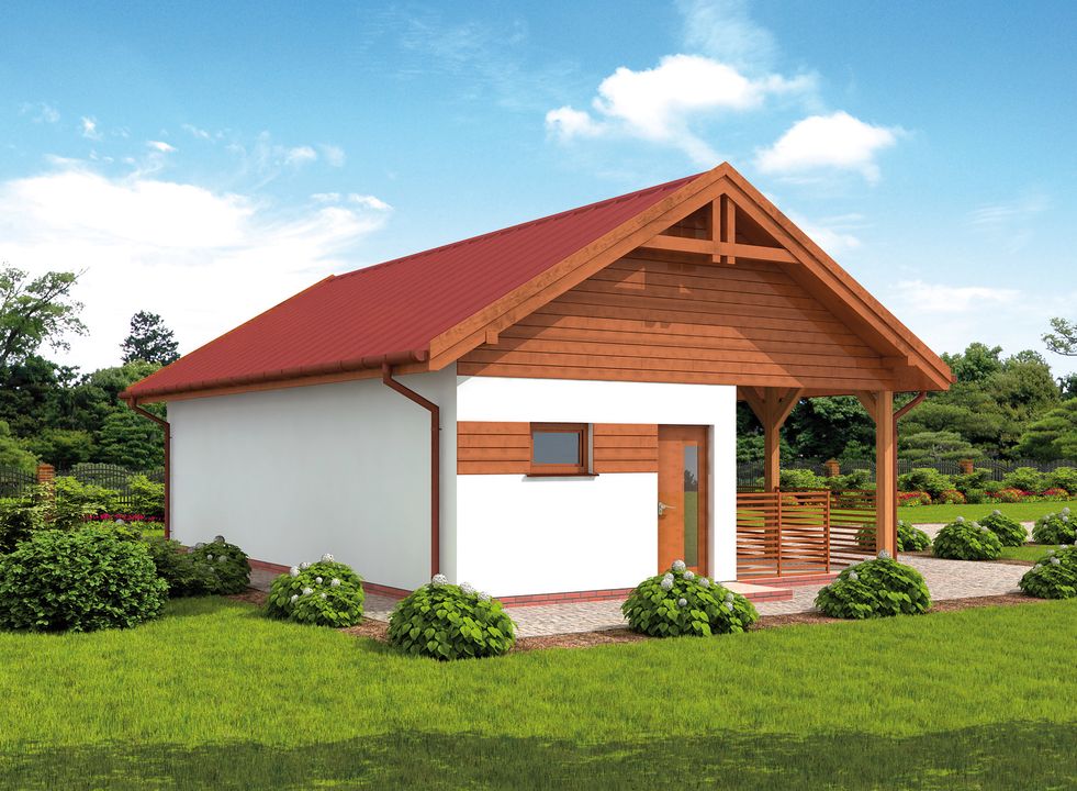 G314 szkielet drewniany garaż dwustanowiskowy z pomieszczeniem gospodarczym i werandą - SLN2572