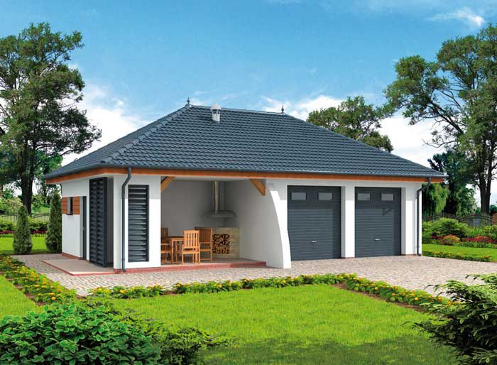 G315 garaż dwustanowiskowy z pomieszczeniem gospodarczym i altaną - SLN1607