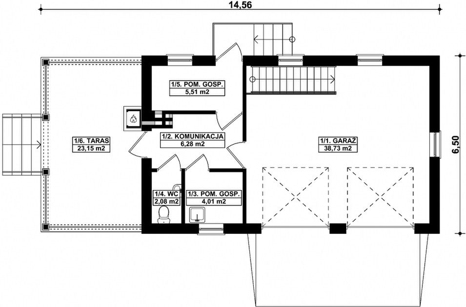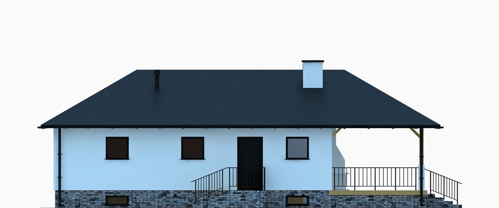 Graficzne opracowanie rzutów poglądowych widocznych na karcie projektu zostało wykonane przez Extradom.pl. Prezentowane przez Extradom.pl wizualizacje wykonane zostały przez autora projektu i należy poczytywać je jedynie za przykład i propozycję wykończenia, wizję architektoniczną autora projektu. Ostateczne wykończenie budynku może nastąpić na wiele sposobów. Szczegółowe rozwiązania zastosowane w oferowanej dokumentacji - w tym również ilość, lokalizacje i wygląd okien, drzwi, kominów - mogą w niewielkim stopniu różnić się od prezentowanej wizualizacji budynku.