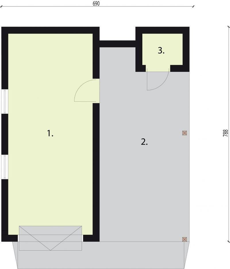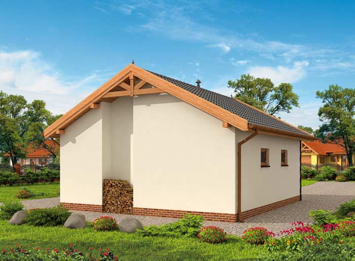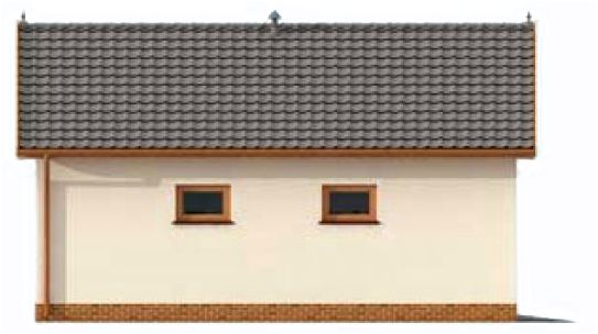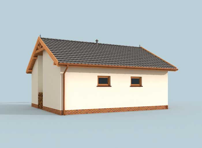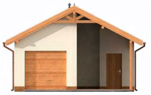 Technologia tradycyjna : - powierzchnia zabudowy budynky -31,97m2 - powierzchnia wiaty nie wchodząca do powierzchni zabudowy -21,75m2 - powierzchnia użytkowa części zamkniętych -24,58m2 - powierzchnia użytkowa części otwartych -21,75m2 - powierzchnia użytkowa razem -46,33m2 - powierzchnia całkowita części zamkniętych -31,97m2 - powierzchnia całkowita części otwartych -21,75m2 - powierzchnia całkowita razem -53,72m2 - kubatura brutto: - części zamkniętych i przekrytych ze szystkich stron -118,67m3 - części niezamkniętych, przekrytych -93,27m3 -kubatura brutto razem -211,94m3 - ściany zewnętrzne nośne murowane grubości 25cm - wszystkie ściany wykonane pustaków ceramicznych "POROTHERM" - wysokość budynku 4,95m - dach dwuspadowy 30° - więźba dachowa drewniana - pokrycie dachu dachówka cementowa bądź ceramiczna - wymiar bramy garażowej 2,4x2,4m