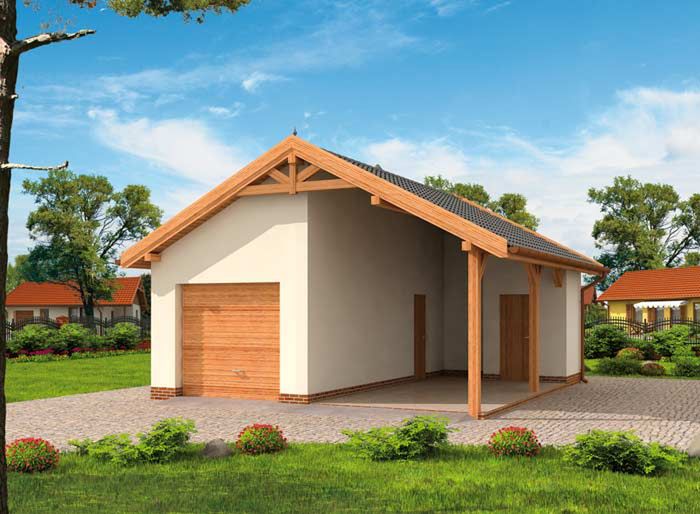 G31m garaż jednostanowiskowy z wiatą i pomieszczeniem gospodarczym SLN1547
