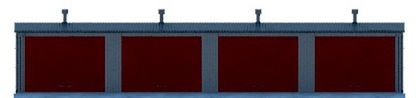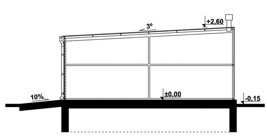 Budynek konstrukcji stalowej. Ściany z blachy trapezowej „T-18”. Bramy o wymiarach 2,50×2,20m. Więźba dachowa dwuspadowa, stalowa, pokryta blachą trapezową.