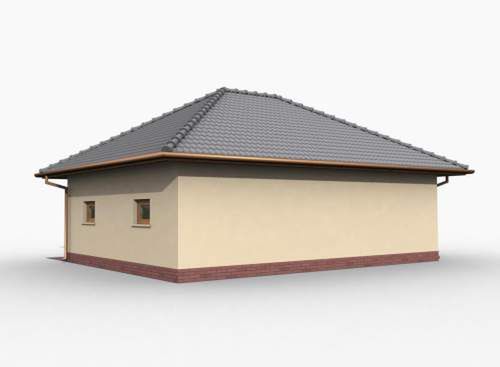 Technologia tradycyjna :- powierzchnia użytkowa przyziemia (bez podcienia) -49,2m2 - powierzchnia zabudowy -57,6m2 - powierzchnia podcienia nie wliczona do powierzchni zabudowy -5,4m2 - powierzchnia całkowita -57,6m2 - kubatura brutto - 261,00m3 - ściany zewnętrzne nośne murowane grubości 25cm - wszystkie ściany wykonane pustaków ceramicznych "POROTHERM" - wysokość budynku 5,40m - dach czterospadowy 30° - więźba dachowa drewniana - pokrycie dachu dachówka cementowa bądź ceramiczna - wymiar bramy garażowej 2,4x2,25m