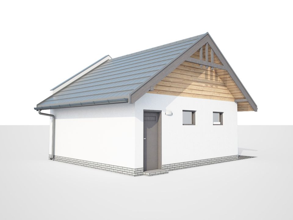Graficzne opracowanie rzutów poglądowych widocznych na karcie projektu zostało wykonane przez Extradom.pl. Prezentowane przez Extradom.pl wizualizacje wykonane zostały przez autora projektu i należy poczytywać je jedynie za przykład i propozycję wykończenia, wizję architektoniczną autora projektu. Ostateczne wykończenie budynku może nastąpić na wiele sposobów. Szczegółowe rozwiązania zastosowane w oferowanej dokumentacji - w tym również ilość, lokalizacje i wygląd okien, drzwi, kominów - mogą w niewielkim stopniu różnić się od prezentowanej wizualizacji budynku.