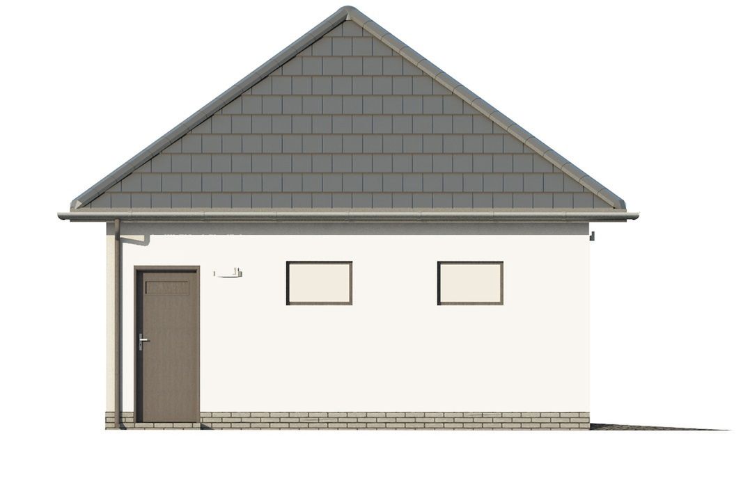 Technologia tradycyjna :- powierzchnia użytkowa - 35,64m2 - powierzchnia zabudowy - 42,25m2 - powierzchnia całkowita - 42,25m2 - kubatura - 166,90m3 - ściany zewnętrzne nośne murowane grubości 25cm - wszystkie ściany wykonane z pustaków ceramicznych "POROTHERM" - wysokość budynku 5,47m - dach dwuspadowy 35° - więźba dachowa drewniana w układzie krokwiowo-jętkowym - pokrycie dachówka ceramiczna - wymiary bram garażowych 2,3x2,4m Technologia szkieletowa: Zapytaj o dostępność projektu