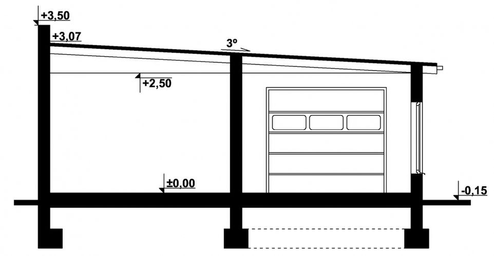 Budynek wykonany w technologii tradycyjnej. Ściany murowane z bloczków z betonu komórkowego grubości 24cm. Brama o wymiarach 2,50×2,20m. Podciąg żelbetowy. Więźba dachowa jednospadowa, drewniana, pokryta blachą na rąbek.