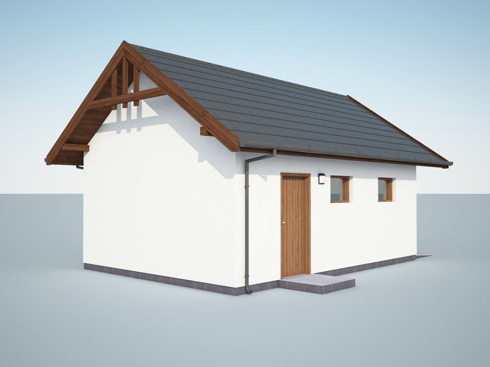 Graficzne opracowanie rzutów poglądowych widocznych na karcie projektu zostało wykonane przez Extradom.pl. Prezentowane przez Extradom.pl wizualizacje wykonane zostały przez autora projektu i należy poczytywać je jedynie za przykład i propozycję wykończenia, wizję architektoniczną autora projektu. Ostateczne wykończenie budynku może nastąpić na wiele sposobów. Szczegółowe rozwiązania zastosowane w oferowanej dokumentacji - w tym również ilość, lokalizacje i wygląd okien, drzwi, kominów - mogą w niewielkim stopniu różnić się od prezentowanej wizualizacji budynku.