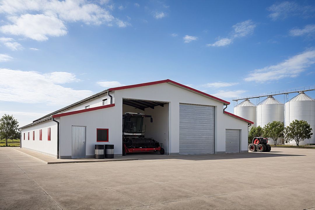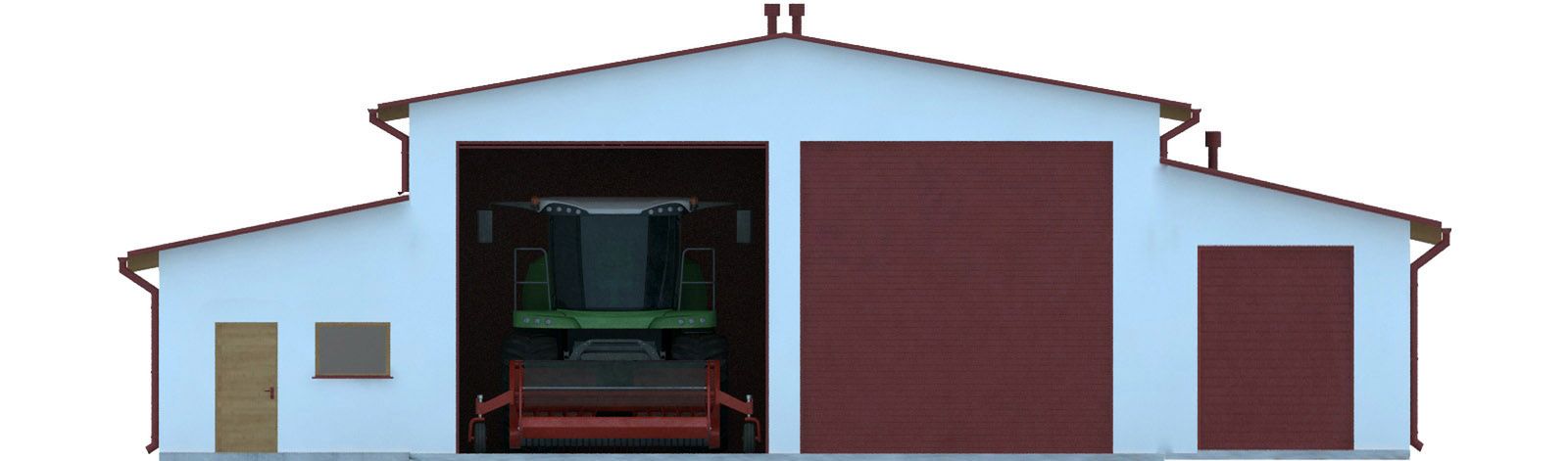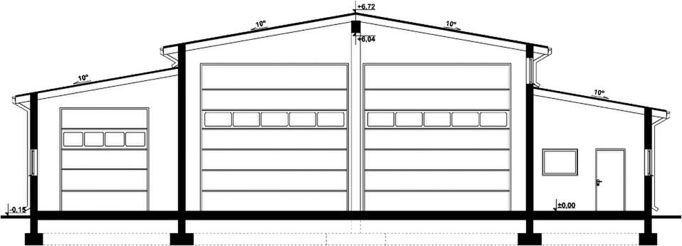 Budynek wykonany w technologii tradycyjnej. Ściany murowane z bloczków z betonu komórkowego grubości 24cm i 12cm. Bramy o wymiarach 5,00×5,00m i 3,00×3,50m. Słupy i podciągi żelbetowe. Więźba dachowa dwuspadowa, drewniana, pokryta blachą trapezową.