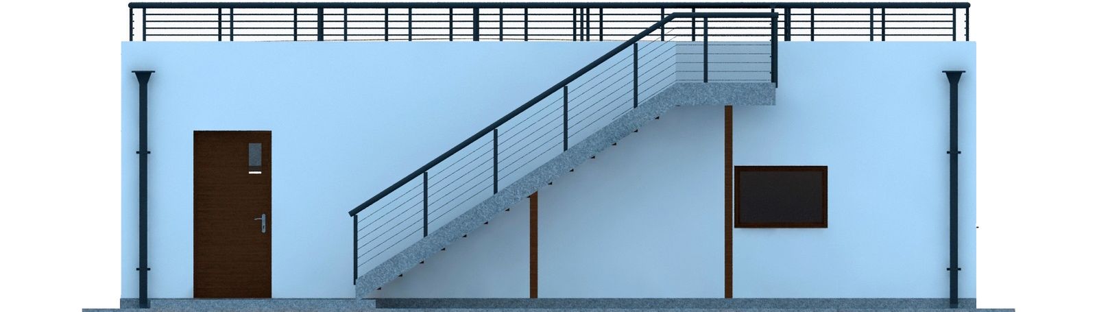 Budynek wykonany w technologii tradycyjnej. Ściany murowane z bloczków z betonu komórkowego grubości 24cm. Dach płaski w formie tarasu.