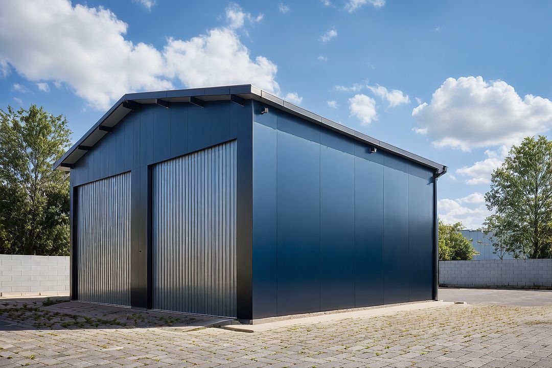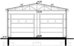 Budynek konstrukcji stalowej. Ściany z blachy trapezowej „T-35”. Bramy o wymiarach 3,20×3,20m. Więźba dachowa dwuspadowa, stalowa, pokryta blachą trapezową.