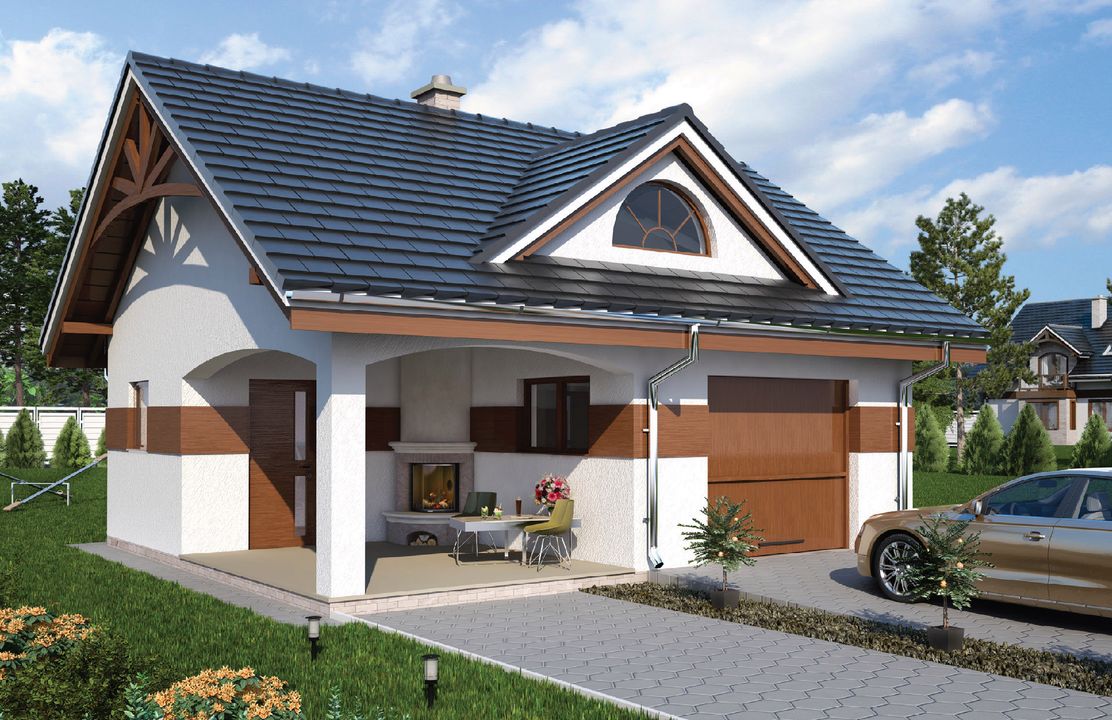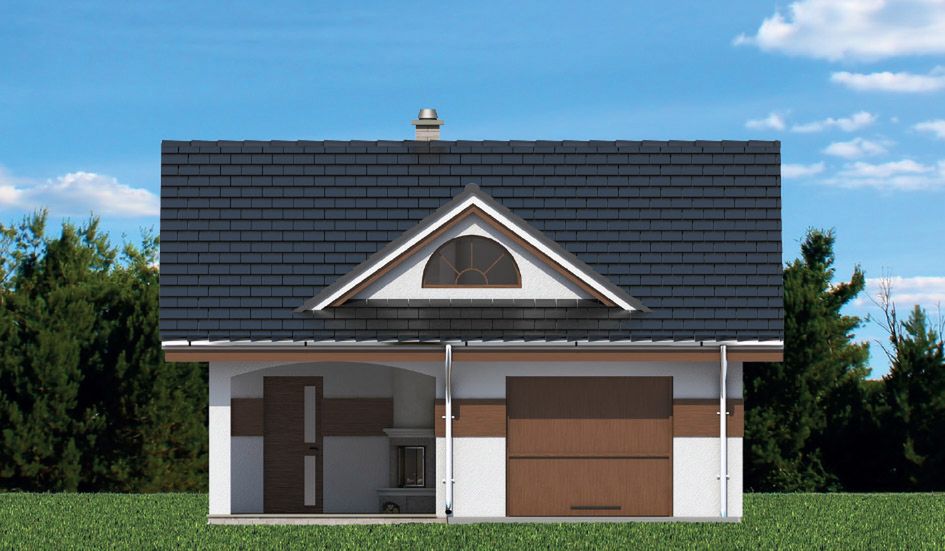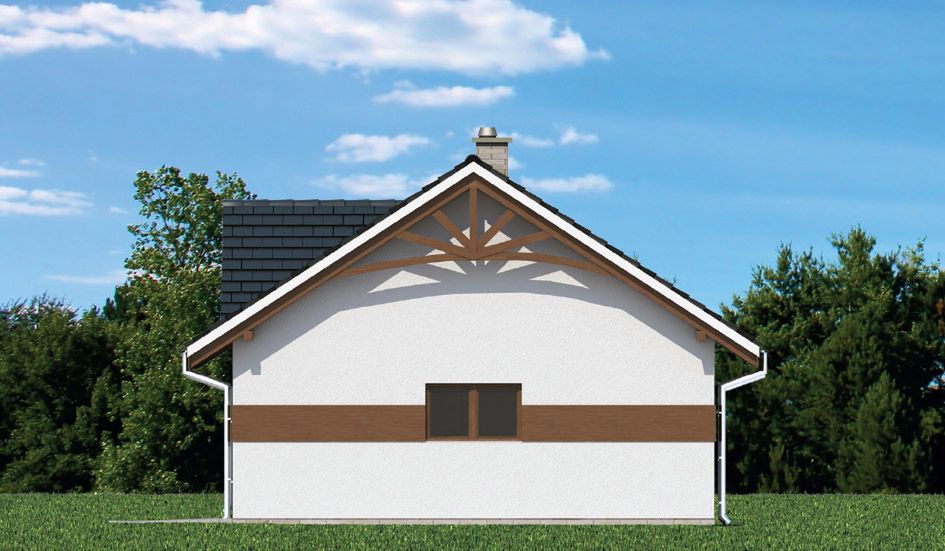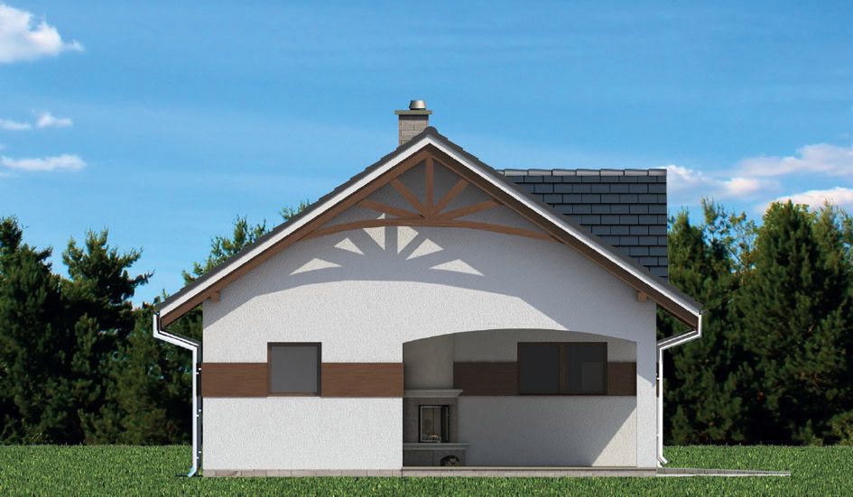 Graficzne opracowanie rzutów poglądowych widocznych na karcie projektu zostało wykonane przez Extradom.pl. Prezentowane przez Extradom.pl wizualizacje wykonane zostały przez autora projektu i należy poczytywać je jedynie za przykład i propozycję wykończenia, wizję architektoniczną autora projektu. Ostateczne wykończenie budynku może nastąpić na wiele sposobów. Szczegółowe rozwiązania zastosowane w oferowanej dokumentacji - w tym również ilość, lokalizacje i wygląd okien, drzwi, kominów - mogą w niewielkim stopniu różnić się od prezentowanej wizualizacji budynku.