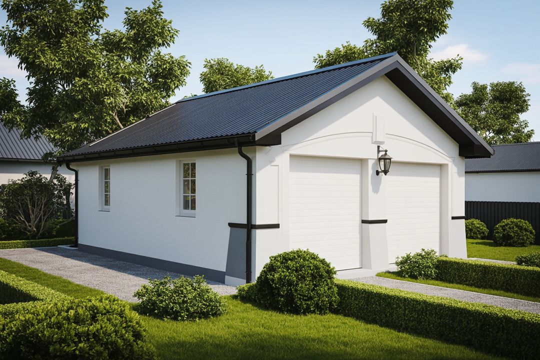 Budynek wykonany w technologii tradycyjnej. Ściany murowane z bloczków z betonu komórkowego grubości 24cm. Bramy o wymiarach 2,40×2,20m. Więźba dachowa dwuspadowa, drewniana, pokryta blachodachówką.