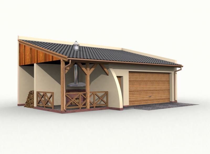 Technologia tradycyjna : - powierzchnia zabudowy budynku (z werandą i składem na drewno) - 76,75m2 - powierzchnia użytkowa przyziemia - 59,66m2 (49.34+weranda 10.32m2) - powierzchnia całkowita - 70,78m2 - kubaruta - 301,50m3 - ściany zewnętrzne nośne murowane 25cm - wszystkie ściny wykonać z pustaków ceramicznych "POROTHERM" - wysokość budynku 5,38m - dach jednospadowy 15° - wiązar dachowy drewniany - pokrycie dachu dachówka ceramiczna - wymiar bram garażowych 5,0 x 2,25m Zapytaj o dostępność projektu w wersji szkieletowej.