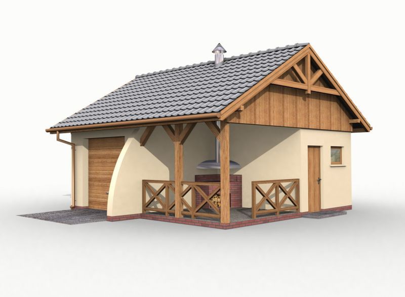 G41 garaż jednostanowiskowy z pomieszczeniem gospodarczym i altaną ogrodową z grilem. SLN1136