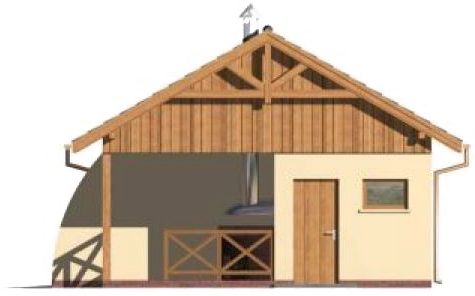 Technologia tradycyjna. Ściany zewnętrzne nośne murowane grubości 25 cm. Wszystkie ściany wykonane pustaków ceramicznych. Więźba dachowa drewniana. Pokrycie dachu dachówka cementowa bądź ceramiczna. Wymiar bramy garażowej 2,4 x 2,4 m.