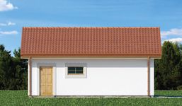 Ściany zewnętrzne: dwuwarstwowe, bloczek gazobetonowy 24 cm + styropian 6 cm. Strop: brak. Schody: brak. Ścianka kolankowa: brak. Dach: czterospadowy, pokrycie z dachówki ceramicznej.