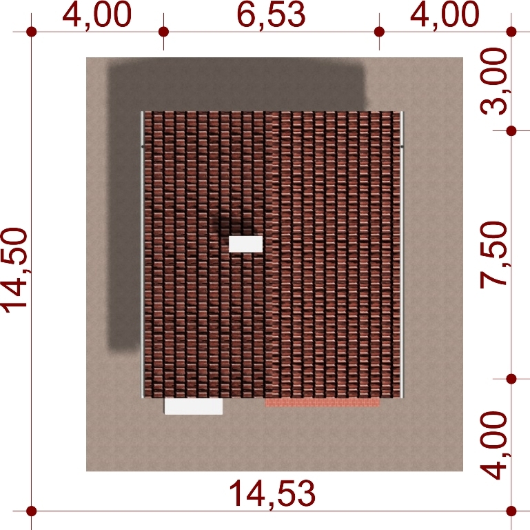 Graficzne opracowanie rzutów poglądowych widocznych na karcie projektu zostało wykonane przez Extradom.pl. Prezentowane przez Extradom.pl wizualizacje wykonane zostały przez autora projektu i należy poczytywać je jedynie za przykład i propozycję wykończenia, wizję architektoniczną autora projektu. Ostateczne wykończenie budynku może nastąpić na wiele sposobów. Szczegółowe rozwiązania zastosowane w oferowanej dokumentacji - w tym również ilość, lokalizacje i wygląd okien, drzwi, kominów - mogą w niewielkim stopniu różnić się od prezentowanej wizualizacji budynku.