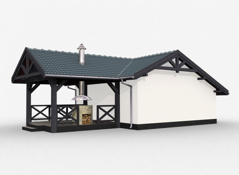 Graficzne opracowanie rzutów poglądowych widocznych na karcie projektu zostało wykonane przez Extradom.pl. Prezentowane przez Extradom.pl wizualizacje wykonane zostały przez autora projektu i należy poczytywać je jedynie za przykład i propozycję wykończenia, wizję architektoniczną autora projektu. Ostateczne wykończenie budynku może nastąpić na wiele sposobów. Szczegółowe rozwiązania zastosowane w oferowanej dokumentacji - w tym również ilość, lokalizacje i wygląd okien, drzwi, kominów - mogą w niewielkim stopniu różnić się od prezentowanej wizualizacji budynku.