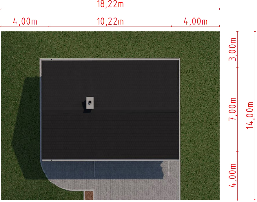 Graficzne opracowanie rzutów poglądowych widocznych na karcie projektu zostało wykonane przez Extradom.pl. Prezentowane przez Extradom.pl wizualizacje wykonane zostały przez autora projektu i należy poczytywać je jedynie za przykład i propozycję wykończenia, wizję architektoniczną autora projektu. Ostateczne wykończenie budynku może nastąpić na wiele sposobów. Szczegółowe rozwiązania zastosowane w oferowanej dokumentacji - w tym również ilość, lokalizacje i wygląd okien, drzwi, kominów - mogą w niewielkim stopniu różnić się od prezentowanej wizualizacji budynku.