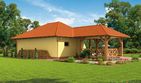 Technologia tradycyjna :- powierzchnia użytkowa -68,07m2 (w tym pow. użytkowa części garażowej -43,27m2 - powierzchnia zabudowy -82,60m2 (w tym pow. zbudowy części garżówej -60,31m2 - powierzchnia całkowita -82,60 - kubatura zamknięte zadaszone -148,84 m3 - kubatura otwatre zadaszone -77,23 - kubatura razem -226,07 - ściany zewnętrzne nośne murowane grubości 25cm - wszystkie ściany wykonane pustaków ceramicznych "POROTHERM" - wysokość budynku 5,47m - dachczterospadowy 30° - więźba dachowa drewniana - pokrycie dachu dachówka cementowa bądź ceramiczna - wymiar bramy garażowej 2,4x2,4m
