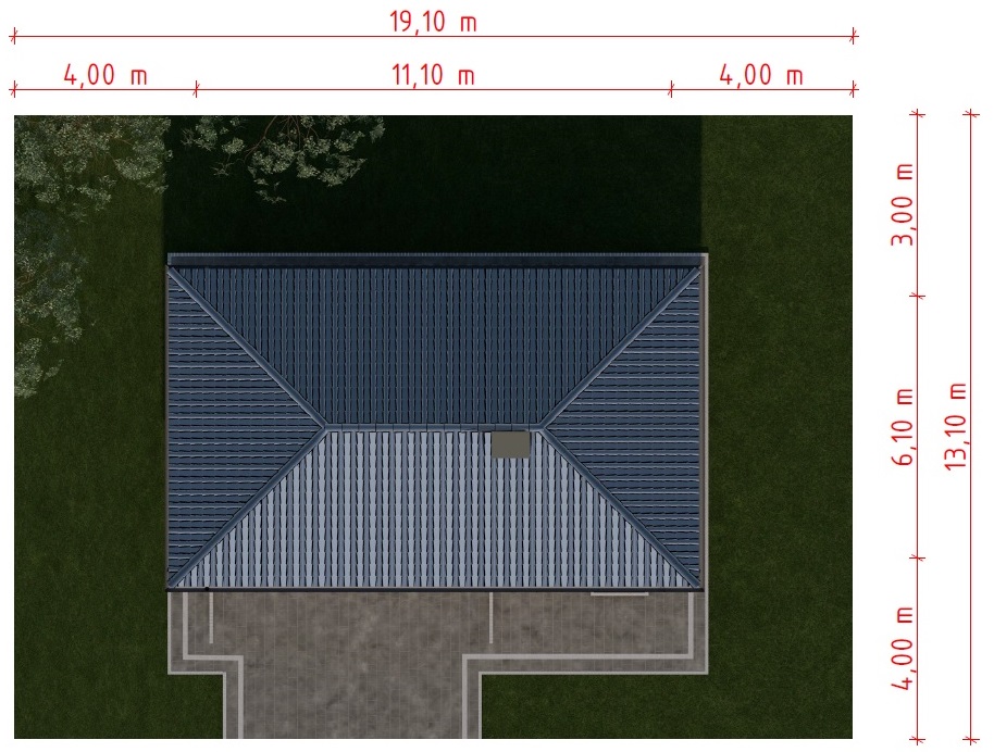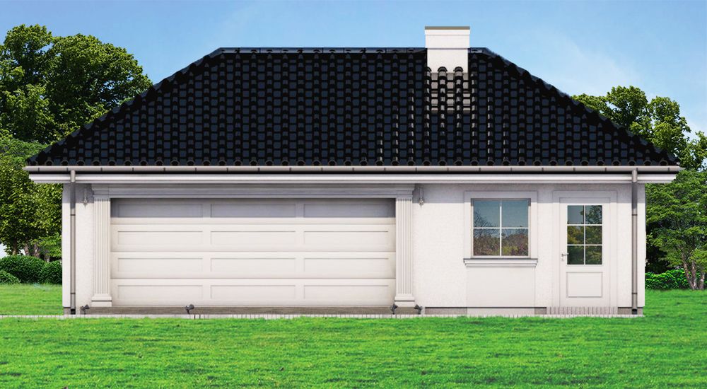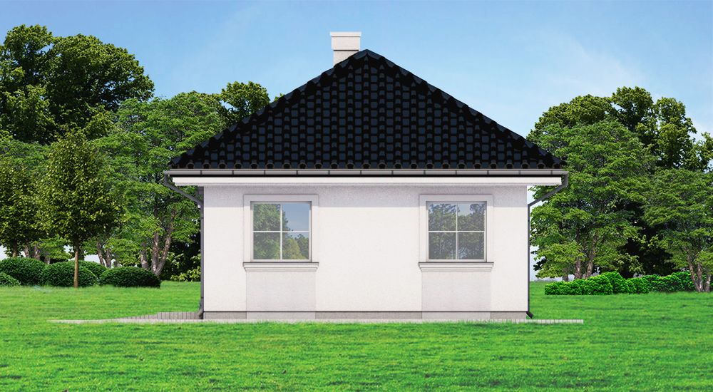 Graficzne opracowanie rzutów poglądowych widocznych na karcie projektu zostało wykonane przez Extradom.pl. Prezentowane przez Extradom.pl wizualizacje wykonane zostały przez autora projektu i należy poczytywać je jedynie za przykład i propozycję wykończenia, wizję architektoniczną autora projektu. Ostateczne wykończenie budynku może nastąpić na wiele sposobów. Szczegółowe rozwiązania zastosowane w oferowanej dokumentacji - w tym również ilość, lokalizacje i wygląd okien, drzwi, kominów - mogą w niewielkim stopniu różnić się od prezentowanej wizualizacji budynku.