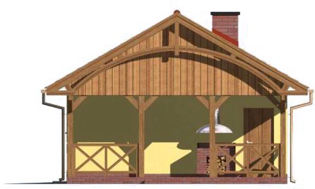Technologia tradycyjna. Ściany zewnętrzne nośne murowane grubości 25 cm. Wszystkie ściany wykonane pustaków ceramicznych. Więźba dachowa drewniane. Pokrycie dachu dachówka cementowa. Wymiar bramy garażowej 2,4 x 2,4 m.