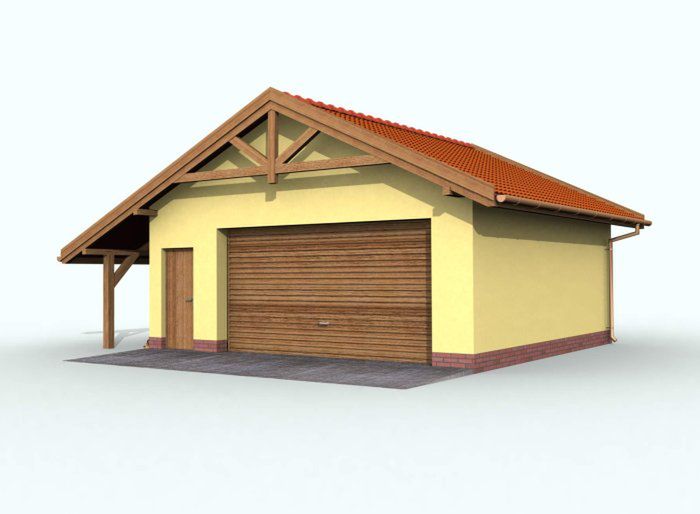 Ściany zewnętrzne nośne murowane grubości 25cm. Wszystkie ściany wykonane pustaków ceramicznych "POROTHERM". Więźba dachowa drewniana. Pokrycie dachu dachówka cementowa bądź ceramiczna. Wymiar bramy garażowej 5,0x2,4m.