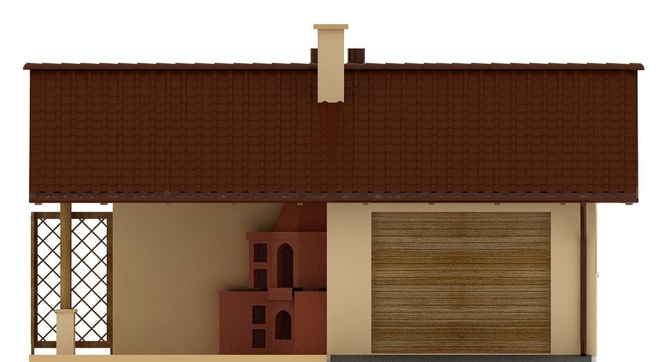 Budynek wykonany w technologii tradycyjnej. Ściany murowane z bloczków z betonu komórkowego grubości 24cm i 12cm. Brama o wymiarach 2,40×2,05m. Grill z cegły ceramicznej pełnej. Słupy żelbetowe. Więźba dachowa dwuspadowa, drewniana, pokryta blachodachówką.