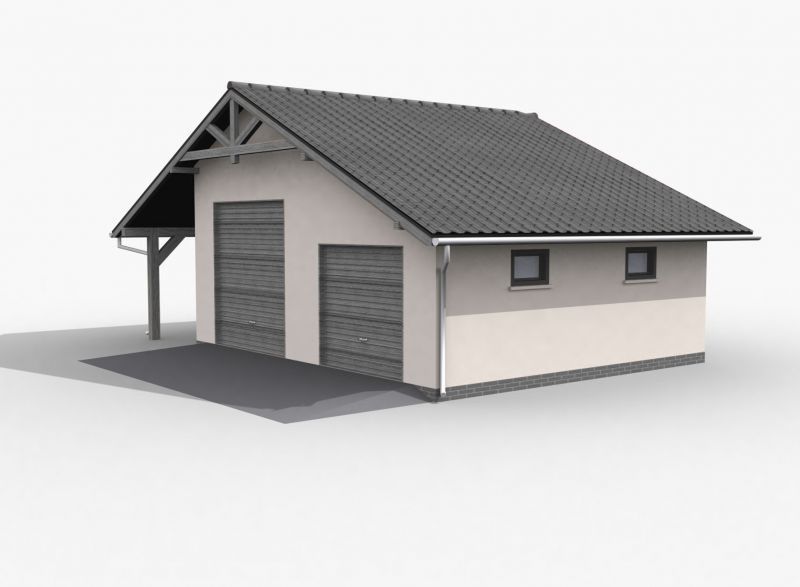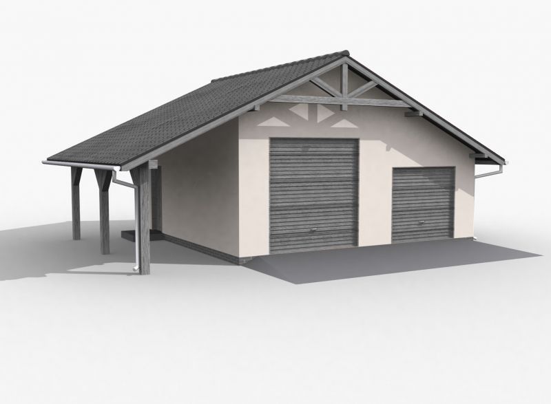 G6 szkielet drewniany, garaż dwustanowiskowy z wiatą garażową jednostanowiskową - SLN2354
