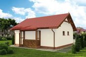 Technologia szkieletowa:- powierzchnia użytkowa - 50,49m2 - powierzchnia użytkowa skadu na drewno - 3m2 - powierzchnia zabudowy - 56,35m2 - powierzchnia całkowita - 56,35m2 - ściany zewnętrzne: słupki 4x15 rozstawione max. co 40cm obite zewnątrz płytą OSB 3 , a wewnątrz płytą GKF , przestrzeń pomiędzy słupkami wypełniona wełną mineralną 15cm.- wysokość budynku 5,28m.- dach dwuspadowy 30° - więźba dachowa drewniana, układ krokwiowo-jętkowy.- pokrycie dachowe : dachówka ceramiczna.Technologia murowana