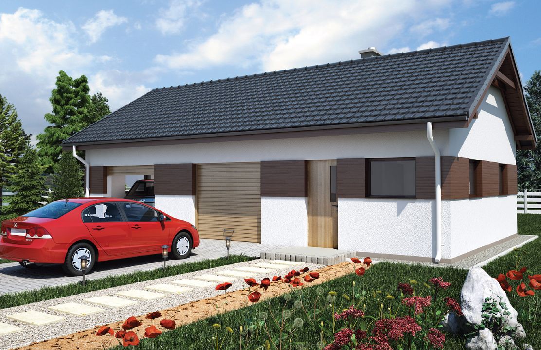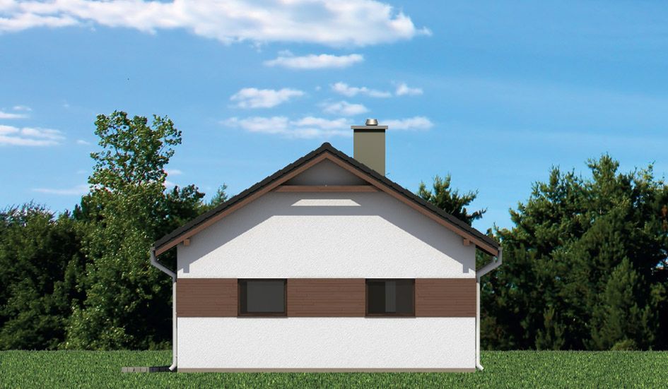 Graficzne opracowanie rzutów poglądowych widocznych na karcie projektu zostało wykonane przez Extradom.pl. Prezentowane przez Extradom.pl wizualizacje wykonane zostały przez autora projektu i należy poczytywać je jedynie za przykład i propozycję wykończenia, wizję architektoniczną autora projektu. Ostateczne wykończenie budynku może nastąpić na wiele sposobów. Szczegółowe rozwiązania zastosowane w oferowanej dokumentacji - w tym również ilość, lokalizacje i wygląd okien, drzwi, kominów - mogą w niewielkim stopniu różnić się od prezentowanej wizualizacji budynku.