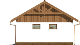Graficzne opracowanie rzutów poglądowych widocznych na karcie projektu zostało wykonane przez Extradom.pl. Prezentowane przez Extradom.pl wizualizacje wykonane zostały przez autora projektu i należy poczytywać je jedynie za przykład i propozycję wykończenia, wizję architektoniczną autora projektu. Ostateczne wykończenie budynku może nastąpić na wiele sposobów. Szczegółowe rozwiązania zastosowane w oferowanej dokumentacji - w tym również ilość, lokalizacje i wygląd okien, drzwi, kominów - mogą w niewielkim stopniu różnić się od prezentowanej wizualizacji budynku.