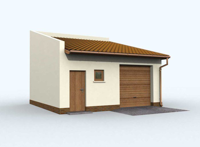 Technologia tradycyjna : - ściany zewnętrzne nośne murowane grubości 25cm - ściany wewnętrzne działowe murowane grubości 12cm - wszystkie ściany wykonane z pustaków ceramicznych "POROTHERM" - wysokość budynku 5,22m - dach jednopadowy 15° - więźba dachowa drewniana - pokrycie dachówka ceramiczna - wymiary bram garażowych 2,4x2,4m