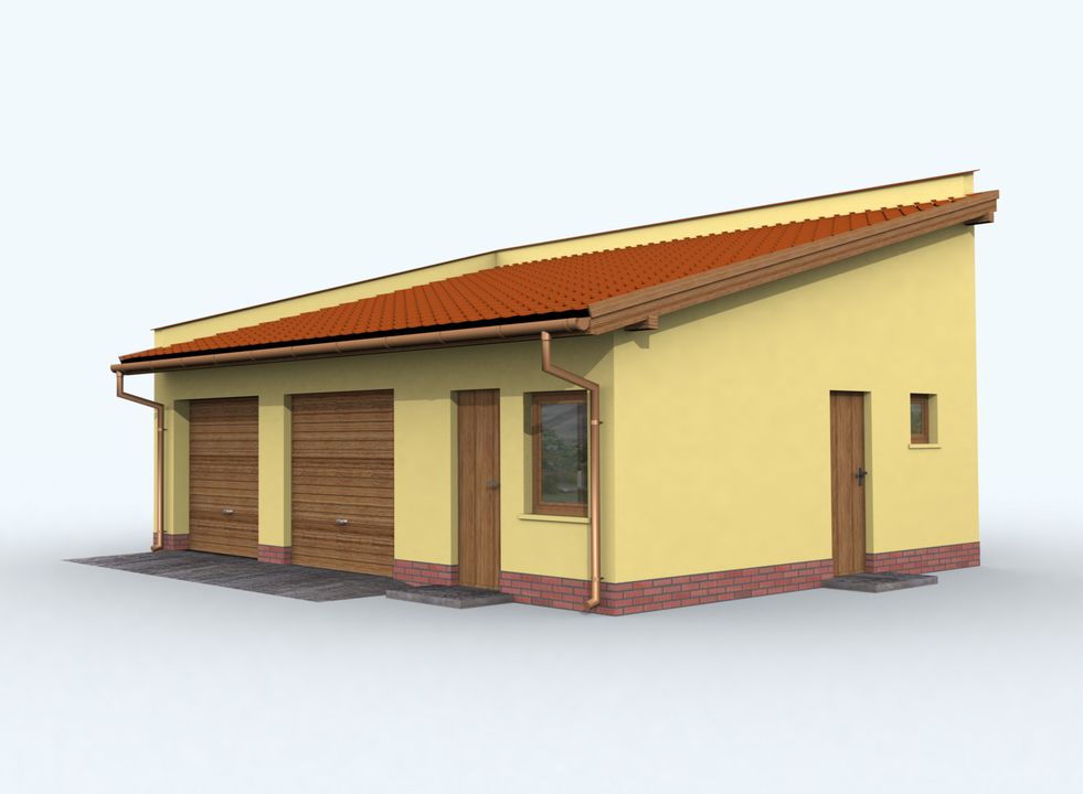 G85 szkielet drewniany projekt garażu dwustanowiskowego z pomieszczeniami gospodarczymi - SLN2469