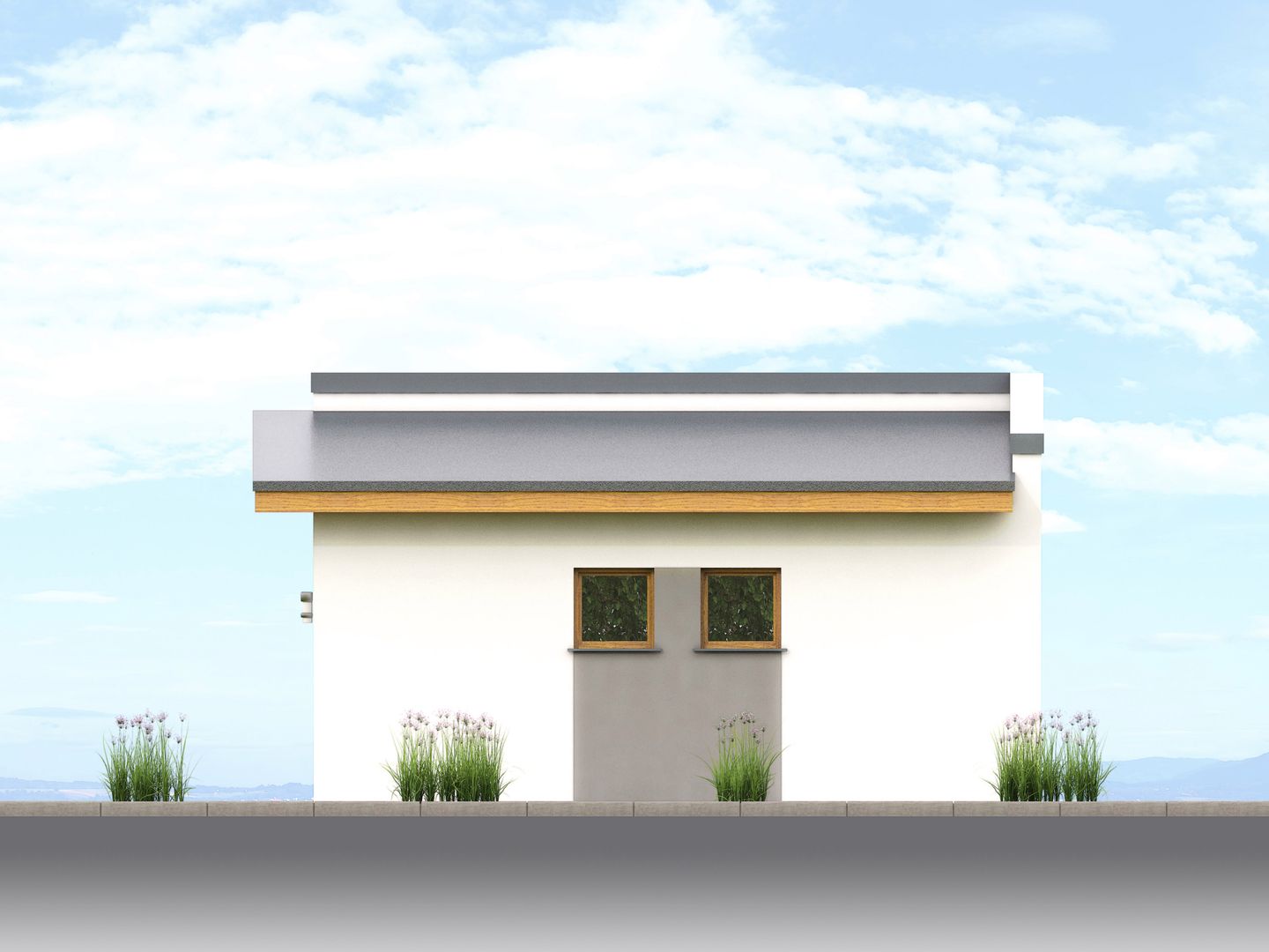 Graficzne opracowanie rzutów poglądowych widocznych na karcie projektu zostało wykonane przez Extradom.pl. Prezentowane przez Extradom.pl wizualizacje wykonane zostały przez autora projektu i należy poczytywać je jedynie za przykład i propozycję wykończenia, wizję architektoniczną autora projektu. Ostateczne wykończenie budynku może nastąpić na wiele sposobów. Szczegółowe rozwiązania zastosowane w oferowanej dokumentacji - w tym również ilość, lokalizacje i wygląd okien, drzwi, kominów - mogą w niewielkim stopniu różnić się od prezentowanej wizualizacji budynku.