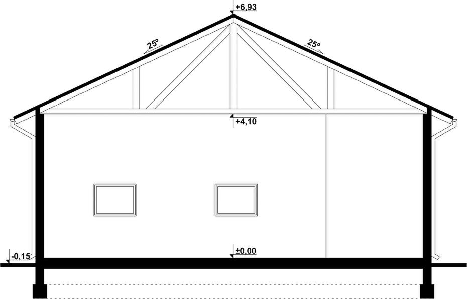 Budynek wykonany w technologii tradycyjnej Ściany murowane z pustaków ceramicznych „POROTHERM” grubości 25cm i cegły kratówki grubości 12cm. Bramy o wymiarach 3,20×3,75m. Więźba dachowa dwuspadowa, drewniana, pokryta blachodachówką.