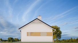 Graficzne opracowanie rzutów poglądowych widocznych na karcie projektu zostało wykonane przez Extradom.pl. Prezentowane przez Extradom.pl wizualizacje wykonane zostały przez autora projektu i należy poczytywać je jedynie za przykład i propozycję wykończenia, wizję architektoniczną autora projektu. Ostateczne wykończenie budynku może nastąpić na wiele sposobów. Szczegółowe rozwiązania zastosowane w oferowanej dokumentacji - w tym również ilość, lokalizacje i wygląd okien, drzwi, kominów - mogą w niewielkim stopniu różnić się od prezentowanej wizualizacji budynku.