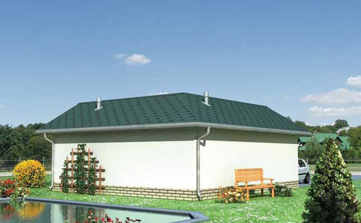 Graficzne opracowanie rzutów poglądowych widocznych na karcie projektu zostało wykonane przez Extradom.pl. Prezentowane przez Extradom.pl wizualizacje wykonane zostały przez autora projektu i należy poczytywać je jedynie za przykład i propozycję wykończenia, wizję architektoniczną autora projektu. Ostateczne wykończenie budynku może nastąpić na wiele sposobów. Szczegółowe rozwiązania zastosowane w oferowanej dokumentacji - w tym również ilość, lokalizacje i wygląd okien, drzwi, kominów - mogą w niewielkim stopniu różnić się od prezentowanej wizualizacji budynku.