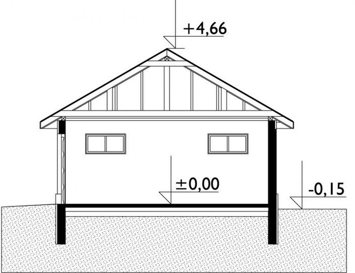 Wersja technologiczna: murowana - beton komórkowy. Strop: belki stropowe Steico Joist. Typ schodów: brak. Konstrukcja dachu: drewniana krokwiowo-jętkowa. Pokrycie dachowe: blachodachówka. Typ ogrzewania: brak danych. Ściany zewnętrzne: 24 cm beton komórkowy.