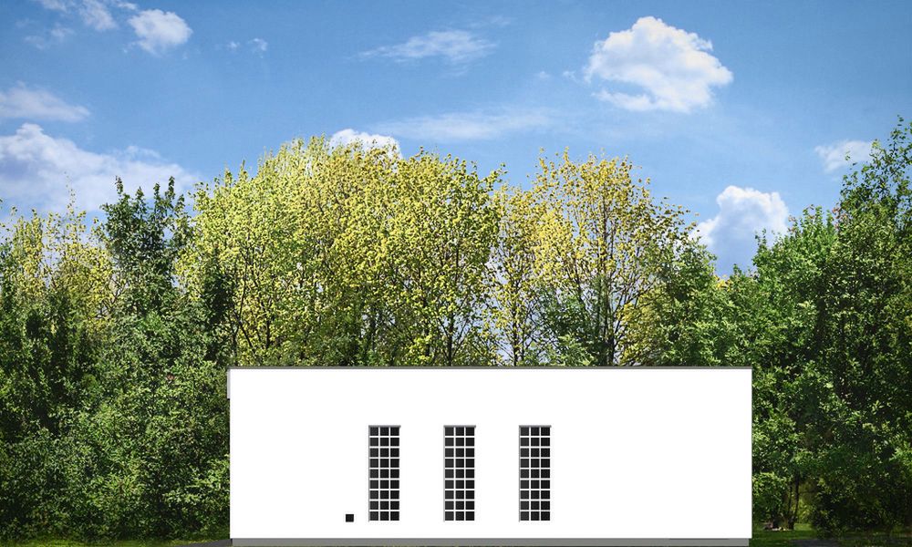 Fundamenty: ławy betonowe. Ściany fundamentowe: bloczki. Ściany: beton komórkowy + styropian. Więźba dachowa: płyta żelbetowa. Elewacje: tynk cienkowarstwowy. Pokrycie dachu: papa wierzchniego krycia. Nachylenie dachu: dach płaski.