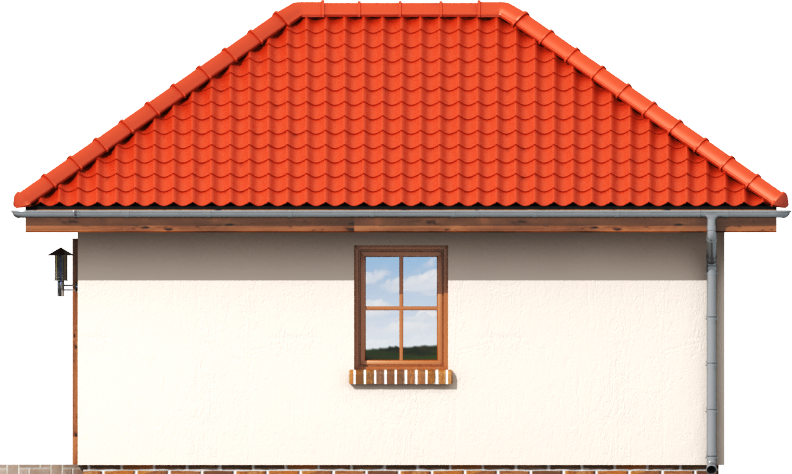 Ilość drewna na więźbę: 1.45 m³. Strop: płyta żelbetowa. Pokrycie dachu: dachówka ceramiczna. Ściany zewnętrzne: pustaki ceramiczne + styropian. Typ ogrzewania: brak.