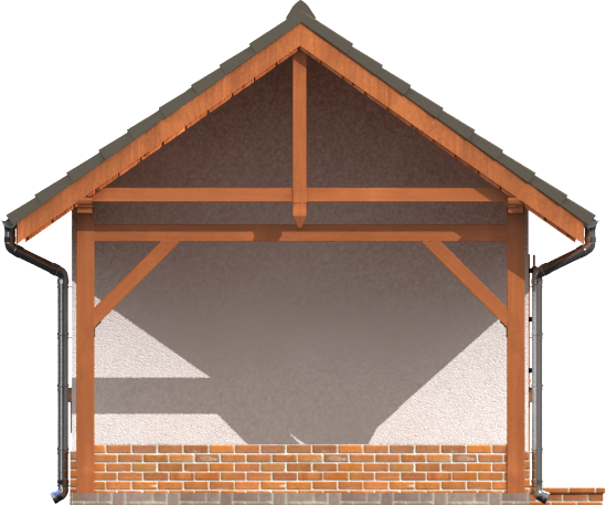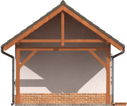 Ilość drewna na więźbę: 1.38 m³. Strop: płyta żelbetowa. Pokrycie dachu: dachówka ceramiczna. Ściany zewnętrzne: pustaki ceramiczne + styropian. Typ ogrzewania: brak.