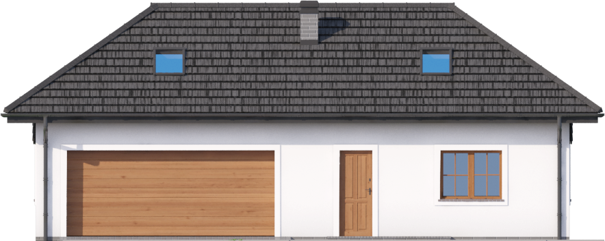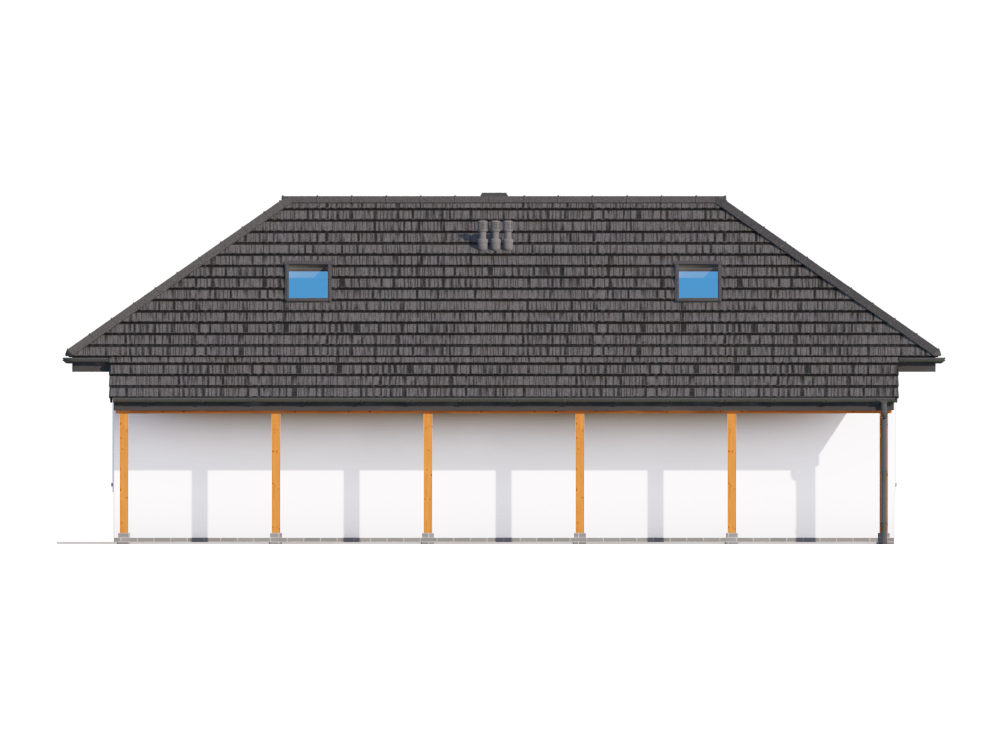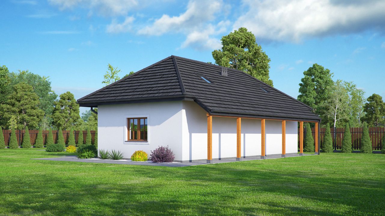 Graficzne opracowanie rzutów poglądowych widocznych na karcie projektu zostało wykonane przez Extradom.pl. Prezentowane przez Extradom.pl wizualizacje wykonane zostały przez autora projektu i należy poczytywać je jedynie za przykład i propozycję wykończenia, wizję architektoniczną autora projektu. Ostateczne wykończenie budynku może nastąpić na wiele sposobów. Szczegółowe rozwiązania zastosowane w oferowanej dokumentacji - w tym również ilość, lokalizacje i wygląd okien, drzwi, kominów - mogą w niewielkim stopniu różnić się od prezentowanej wizualizacji budynku.