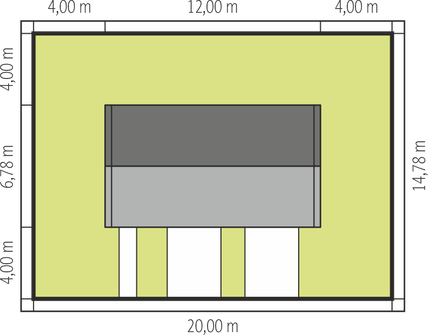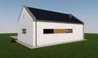 Graficzne opracowanie rzutów poglądowych widocznych na karcie projektu zostało wykonane przez Extradom.pl. Prezentowane przez Extradom.pl wizualizacje wykonane zostały przez autora projektu i należy poczytywać je jedynie za przykład i propozycję wykończenia, wizję architektoniczną autora projektu. Ostateczne wykończenie budynku może nastąpić na wiele sposobów. Szczegółowe rozwiązania zastosowane w oferowanej dokumentacji - w tym również ilość, lokalizacje i wygląd okien, drzwi, kominów - mogą w niewielkim stopniu różnić się od prezentowanej wizualizacji budynku.